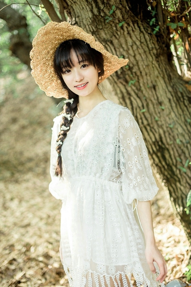 麻花辮美少女清新脫俗