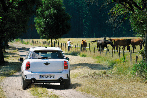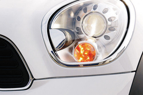 Countryman并不是將Cooper嚴(yán)格按比例放大的產(chǎn)物,兩車的樣子不可能完全一樣,不過總的來說,它們?nèi)允秋@而易見的一家人。盡管增加了高度和離地間隙,MINI經(jīng)典的車身比例和諸多細(xì)節(jié)特征卻被較好地保留下來,例如極短的前后懸、鍍鉻鑲邊的大燈和進(jìn)氣格柵、近乎直立的風(fēng)擋玻璃,呈半圓形的外后視鏡、前寬后窄的駕駛室外形,豎直排列的尾燈等等。站在50米開外,你能認(rèn)出這是一輛MINI,卻不太容易將它與普通版MINI區(qū)分開來。