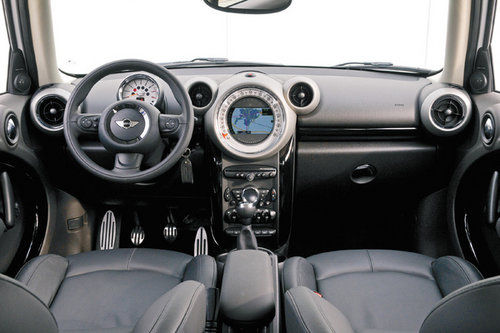 走近之后,你會(huì)在它身上發(fā)現(xiàn)一些不太熟悉的設(shè)計(jì)。前大燈不再是圓形,進(jìn)氣格柵從六邊形改為倒梯形,A柱底部的側(cè)轉(zhuǎn)向燈部分進(jìn)行重新設(shè)計(jì),輪眉和車身底部采用黑色塑料妝點(diǎn),車頂?shù)幕《纫哺枬M(用戶仍然能選擇十?dāng)?shù)種車頂圖案)。也許這需要忠實(shí)擁躉多花點(diǎn)時(shí)間接受,但無論如何,像保時(shí)捷那樣數(shù)十年幾乎一成不變的設(shè)計(jì)恐怕不利于MINI品牌的成長(zhǎng)。 相比之下,車廂內(nèi)部設(shè)計(jì)應(yīng)該不會(huì)引起太多爭(zhēng)議。充滿弧線的內(nèi)飾,儀表臺(tái)中央碩大的車速表,俏皮的圓形空調(diào)出風(fēng)口,中控臺(tái)上密密麻麻的航空式開關(guān),一切都讓人那么熟悉。唯一需要適應(yīng)的就是造型呈“7”字形的手剎手柄。不過大概正如Countryman這個(gè)名字所暗示的回歸田園風(fēng)格吧,這批試駕車的鍍鉻裝飾材料使用量比以前大大減少,多功能方向盤、中控臺(tái)面板、出風(fēng)口和換檔桿底座上都只是常規(guī)的塑料材質(zhì)。當(dāng)然,如果你喜歡那種閃閃發(fā)亮的裝飾風(fēng)格或淺色內(nèi)飾,今后仍然可以在經(jīng)銷商那里定制。