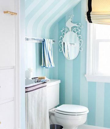 從墻面一直延伸到天花板的豎線條有一種提升浴室空間的效果,這是非常討巧的打造手法。利用垂直線條帶給人眼睛的錯覺,而不是削弱空間尺度。