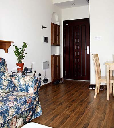 進門處比較小,從墻面原來的地方偷出來一個小位置,做了個嵌入墻里的鞋柜。說實話擺不下我的鞋子,但是沒辦法,空間有限。好在我還有個大大的地柜可以放很多東西。
