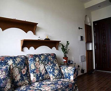 沙發(fā)背景很簡單的做了兩個小層板。這個小設計我很滿意呢。聽施工隊長說,他還把我家的這個款式做給了人家呢!淘來的舊舊的小掛架,嘿嘿,很喜歡這些有點復古的東西。