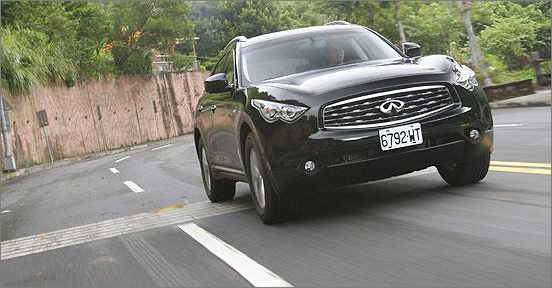 此外多檔位變速系統(tǒng),在燃油效能上也有其作用。以100km/h的時(shí)速進(jìn)行巡航,此時(shí)引擎轉(zhuǎn)速可維持在1,800rpm的中低轉(zhuǎn)速域;而就經(jīng)濟(jì)部能源局的油耗測(cè)試所示,F(xiàn)X35每公升9.5公里的平均油耗數(shù)字,在同級(jí)車中也數(shù)名列前茅。 偏硬懸吊彎內(nèi)表現(xiàn)優(yōu)異 在市區(qū)輕步行走,F(xiàn)X35自方向盤回饋的是一種扎實(shí)充足的手感,提供駕駛在輕松轉(zhuǎn)向外,仍可知悉目前的路面情形。懸吊反應(yīng)上,F(xiàn)X35則傳遞出略偏硬派的設(shè)定,但又帶有一絲的韌度。面對(duì)市區(qū)的一些小型坑洞,懸吊系統(tǒng)的表現(xiàn)顯得短促明快,約莫一兩個(gè)行程便可將彈跳吸收,維持一定的舒適程度。