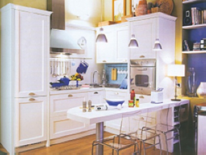 多功能吧臺分隔活動(dòng)空間: 在吧臺的一側(cè),是具有多功能設(shè)計(jì)的起居室,另一端則是整潔干凈的開放式廚房。
