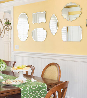 選擇大小不一的鏡子進(jìn)行組合搭配來(lái)裝點(diǎn)墻面,在排列的時(shí)候也沒(méi)有固定的模式。小面積的裝點(diǎn)可以把平庸的墻面變得立體和個(gè)性,這樣的裝飾手法簡(jiǎn)單而不張揚(yáng),卻顯得藝術(shù)范兒十足。