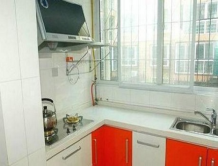 廚房通透明亮。廚房的櫥柜是照應(yīng)整體家居的顏色選的,在以白色為主調(diào)的空間中,偶爾一抹鮮亮的橙是亮點(diǎn)。