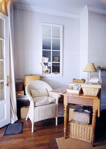 起居室一角里素雅的鄉(xiāng)村風(fēng)格的小辦公區(qū),天然材質(zhì)的家具,迎合整體風(fēng)格的收納盒將物品收納其中,讓空間井然有序。