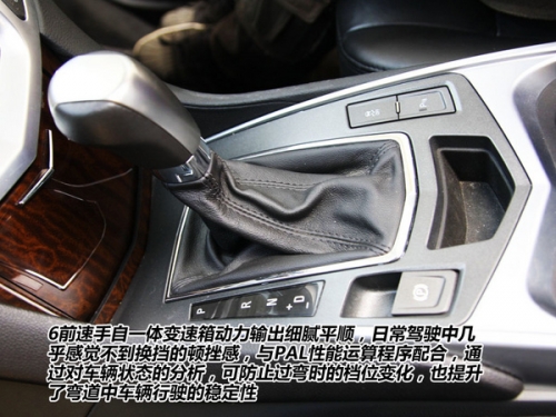 與之匹配的是名為6T70的6前速手自一體變速箱,與發(fā)動機(jī)配合良好。D檔模式下動力輸出細(xì)膩平順,日常駕駛中換擋的頓挫感極不明顯,切換到手動模式且不做換擋動作時,變速箱會默認(rèn)保持S檔,這時換擋的時機(jī)會延后,以便更充分的發(fā)揮發(fā)動機(jī)的動力。該款變速箱配合PAL性能運(yùn)算程序,通過對車輛狀態(tài)的分析,可防止過彎時的檔位變化,也提升了彎道中車輛行駛的穩(wěn)定性。