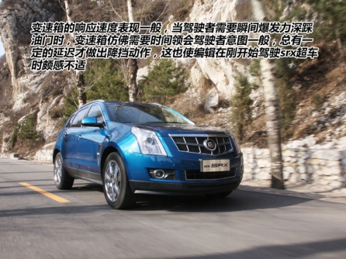 遺憾的是變速箱的響應(yīng)速度表現(xiàn)一般,當(dāng)駕駛者需要瞬間爆發(fā)力深踩油門時,變速箱仿佛需要時間領(lǐng)會駕駛者意圖一般,總有一定的延遲才做出降擋動作,這也使編輯在剛開始駕駛srx超車時頗感不適。