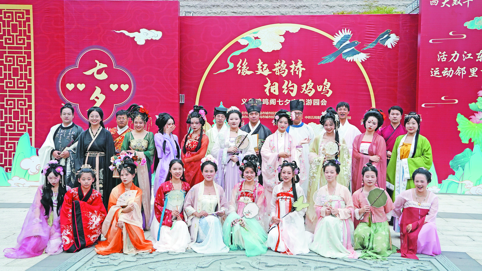 農(nóng)歷七月初七是七夕節(jié),又稱乞巧節(jié),是我國(guó)傳統(tǒng)節(jié)日中最具浪漫色彩的節(jié)日,為迎接七夕到來,8月19日—22日,城投集團(tuán)在義烏雞鳴山公園雞鳴閣舉辦七夕市集游園會(huì),活動(dòng)包括穿越古風(fēng)漢服、游園廟會(huì)、民俗非遺、紅娘婚戀專場(chǎng)等內(nèi)容。 活動(dòng)現(xiàn)場(chǎng),圍繞七夕主題氛圍,雞鳴閣整體氛圍布置為視覺主線進(jìn)行系列體驗(yàn)串聯(lián),開展古風(fēng)主題的市集活動(dòng),通過潮玩,藝趣與文創(chuàng)手作的“碰撞”,以及主題氛圍布置為游客提供穿越時(shí)空浪漫的逛街趕集與休閑娛樂的新體驗(yàn)。游園打卡項(xiàng)目還布設(shè)填充了傳統(tǒng)文化趣味互動(dòng)游戲,增添活動(dòng)現(xiàn)場(chǎng)互動(dòng)氛圍和內(nèi)容豐富性。同時(shí),現(xiàn)場(chǎng)結(jié)合雞鳴閣研學(xué)活動(dòng),聯(lián)合學(xué)校進(jìn)行互動(dòng)學(xué)習(xí),讓孩子在游玩中感受文化的魅力。 或婉約素雅,或雍容華麗,或儒雅脫俗……8月19日晚,在雞鳴閣活動(dòng)現(xiàn)場(chǎng),游客身著各式漢服,衣裾渺渺,羅裙翩翩,演繹著千年華夏服飾的詩情畫意!澳軄韰⒓舆@個(gè)活動(dòng),我感到非常高興,在活動(dòng)中也認(rèn)識(shí)了很多喜歡漢服的青年朋友們,希望以后多多聚在一起宣傳漢服文化,弘揚(yáng)我們的傳統(tǒng)文化!睗h服愛好者陳女士說。 禧月七夕,花燈滿棠,以花燈之名,行浪漫之事,一日夢(mèng)回千年,天階夜色涼如水,臥看牽牛織女星,覓巡闌珊處。在七夕節(jié)日的烘托氛圍下,雞鳴閣被規(guī)劃為半遮面茶坊區(qū)、樂坊區(qū)、雅集區(qū)、非遺手作區(qū)、游樂區(qū)、舞臺(tái)區(qū)等多個(gè)古風(fēng)場(chǎng)景,帶給游客沉浸式體驗(yàn)。 “夜晚,在燈光的映襯下,雞鳴閣尤為壯觀,讓我岀好片。”攝影愛好者鮑杭衛(wèi)說。這里不僅僅是攝影愛好者的樂園,還是漢服愛好者等的家園。沉浸體驗(yàn),讓我們跟隨走街串巷的工匠,點(diǎn)茶焚香的文人,手執(zhí)團(tuán)扇的閨秀,走進(jìn)不同尋常的文藝與情調(diào),玩轉(zhuǎn)夢(mèng)華雞鳴閣。 一道鵲橋橫渺渺,千聲玉佩過玲玲。別離還有經(jīng)年客,悵望不如河鼓星。七夕今宵看碧霄,牛郎織女渡鵲橋;家家乞巧望秋月,穿盡紅絲幾萬條。“在這里我過了個(gè)與眾不同的七夕。”湘妹子仇秋秋和她的對(duì)象說。 城投集團(tuán)旅游公司負(fù)責(zé)人介紹,舉辦七夕市集游園會(huì),讓廣大市民們感受義烏文化魅力,弘揚(yáng)傳統(tǒng)文化的同時(shí),也吸引更多的游客到場(chǎng),提升雞鳴閣的客流量和知名度。 |