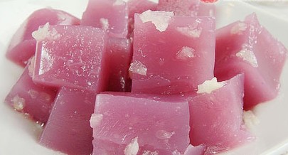 最近天氣越來(lái)越熱,總是想著吃些涼爽開胃的食物,熱湯熱水的看著便覺要汗流浹背了。家里正好有新買來(lái)的莧菜,想著不如試著做個(gè)彩色涼粉來(lái)?yè)Q換口味。想罷便挽起袖子去廚房試驗(yàn),過程很有趣,我每次都是隨手拿一小把莧菜,所以做出來(lái)的顏色,深淺不一而卻各俱風(fēng)韻。 涼粉又名“水晶凍”,一般家庭制作可選用紅薯、土豆或綠豆制的淀粉為原料。將淀粉用水化開攪勻,倒入鍋內(nèi)順時(shí)針攪拌燒至淀粉糊變透明,即可倒入容器,接著放入涼水中浸泡,即成涼粉。吃時(shí)用刀切成小塊放入碗內(nèi),喜歡咸口的可以澆上好醋、蒜泥拌和;喜歡甜口的,可澆上糖水佐食,如此一碗夏令消暑小食就做好了,光是想想就讓人垂涎三尺,頓覺清涼呢。 紅薯淀粉做出的成品,淡淡的藕荷色竟有幾分可愛如果凍;而用土豆淀粉做出來(lái)的涼粉,粉粉嫩嫩的竟如三月陽(yáng)春一般嬌美。隨手又把鍋里剩余的粉糊填進(jìn)了硅膠模具中,想著到時(shí)再插上根牙簽,一定很像棒棒糖,蘸著冰奶昔一口一個(gè),創(chuàng)新吃法真是拉風(fēng)至極,今夏你也來(lái)試試這別出心裁的涼粉新吃法吧。 彩色涼粉頭號(hào)功臣的真容,紅莧菜簡(jiǎn)直就是為美食而生滴。這是用紅薯涼粉做的,家人更喜歡這個(gè)滴口感,比土豆淀粉的要更筋道。這是用土豆淀粉做的,因?yàn)橥炼沟矸垲伾羌儼椎模虼祟伾容^明艷,實(shí)物更加?jì)擅琅丁?/FONT>