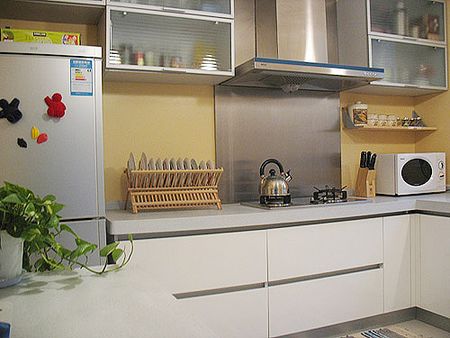 成組的櫥柜、成排的擱板、琳瑯滿目的餐具和大摞的餐盆,而且?guī)缀鯖]有一個區(qū)域會有浪費,是個滿打滿算的大廚房。