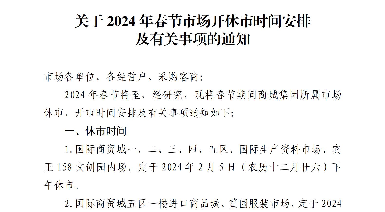 義烏各市場(chǎng)、物流園開休市時(shí)間安排 一起來看看 各物流園區(qū)開休園時(shí)間安排國(guó)內(nèi)公路港、青口物流中心、福田物流中心、江北下朱物流中心開休園時(shí)間公布。