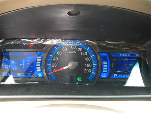 除了檔把前面的“EV、HEV”混合動力切換鍵,內(nèi)飾的變化好像也只有細(xì)心的女同志才能發(fā)現(xiàn)吧。耐心看了一圈,我居然發(fā)現(xiàn)空調(diào)換成自動空調(diào)了。點(diǎn)火是用鑰匙轉(zhuǎn)到“ON”,如果說沒有發(fā)動機(jī)的啟動轟鳴聲讓我小小驚喜的話,那眼前華麗的儀表盤更是讓我目眩,這才是科幻片里一部新概念交通工具應(yīng)有的突破!完全液晶顯示,幽藍(lán)的背景光,電量、驅(qū)動模式、功率表等狀態(tài)都一目了然。 等到儀表盤綠色“OK”燈亮起后,就可以起步了。由于是電動機(jī)驅(qū)動,自然也沒有了怠速這個(gè)概念,車內(nèi)非常的安靜。松開剎車,它并不走,慢踩油門,平穩(wěn)起步。其他都和普通自動擋車沒什么區(qū)別。開起來后功率表一直在個(gè)位數(shù)徘徊,有一種和電動公交車一樣的嗡嗡的聲音。適應(yīng)一會后,我狠狠加大了油門,這一腳讓我毫無準(zhǔn)備,動力沒有絲毫延遲地就發(fā)泄了出來,而且還是異常的強(qiáng)大,跟普通F3根本不是一個(gè)概念,就和B級車的動力差不多,推背感強(qiáng)烈,還沒有換擋的頓挫,就這樣持續(xù)地速度攀升,后勁十足。那種嗡嗡的聲音頻率也提高了許多,但相比汽油機(jī)車型這聲音可以忽略不計(jì)。松開油門后,可以感覺到車速下降很快,可能是回收充電的原因。