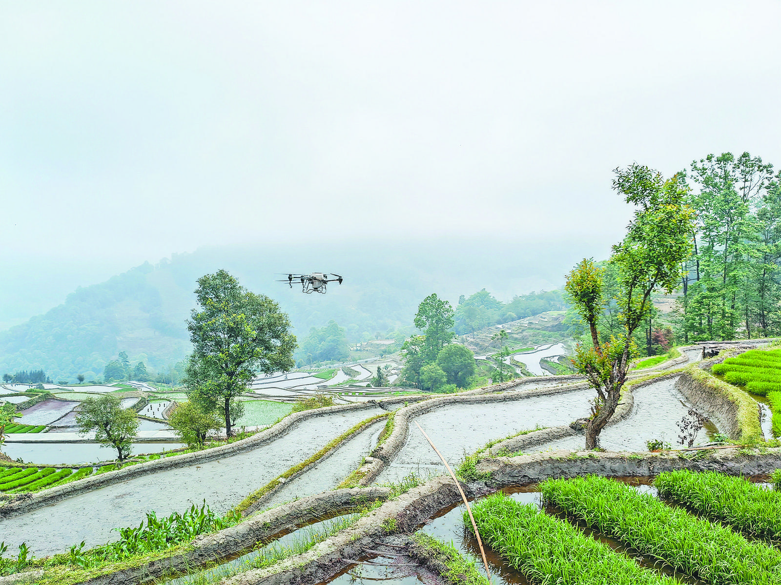 面對水稻種植山地田塊小、機耕難以施展的難題,元陽縣探索出“無人機+機械化”的山地梯田水稻種植新模式,如今已在馬街鄉(xiāng)和牛角寨鎮(zhèn)開展試驗示范,示范田共計306畝。