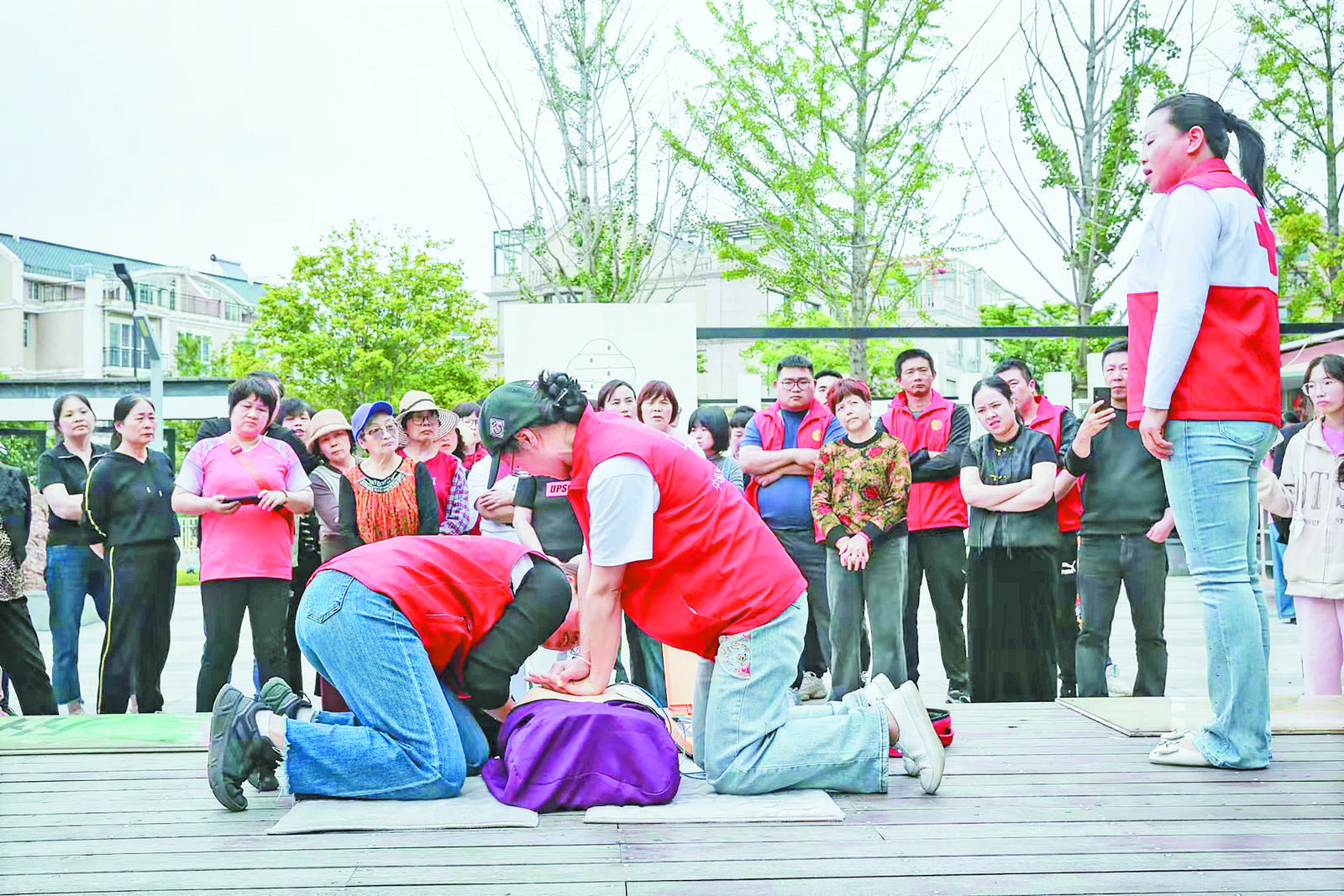 培訓(xùn)班上,社區(qū)工作人員為微網(wǎng)格長們科普了消防急救安全知識,市紅十字會有關(guān)人員通過人形模具演示的方法,為大家講解了心肺復(fù)蘇的要點(diǎn),逐一分解施救步驟,演示救護(hù)全過程。