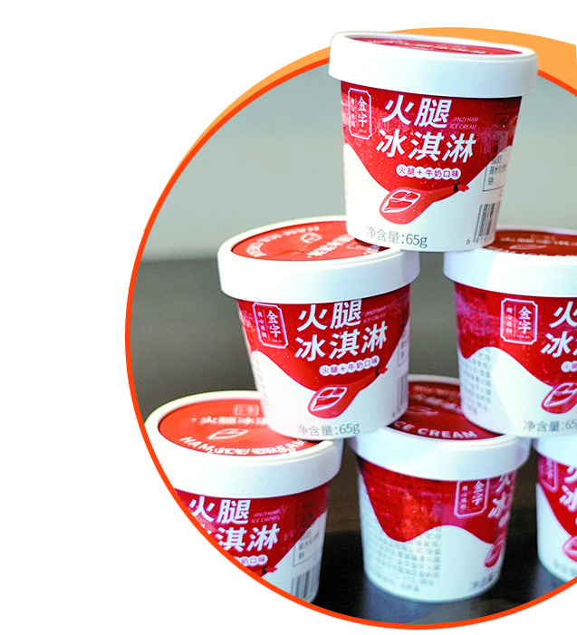 這兩天,金華人的朋友圈被一款冰淇淋刷屏了,不少食客第一時間分享:“火腿+冰淇淋,有意思”“又甜又咸,腦洞不小”。還有商家喊話廠商:“我要進貨,這個夏天它必火。” 這款出圈的火腿冰淇淋來自金華金字火腿股份有限公司,千年火腿玩跨界,甜咸口感如何挑逗食客味蕾? 能吃到火腿肉 零售價8元 金華火腿首次跨界到冰淇淋市場,在社交平臺掀起廣泛討論。有網友關心火腿冰淇淋價格多少,還有人好奇冰淇淋里有沒有火腿肉。 火腿冰淇淋由金字火腿研發(fā),金華人熟悉的金東區(qū)又一喜乳業(yè)生產,目前僅有火腿+牛奶一種口味,屬于組合型半乳脂冰淇淋;鹜扰c冰淇淋的配比是外界最好奇的細節(jié),按配料表顯示,每盒冰淇淋凈含量為65克,火腿添加量≥3%。 打開冰淇淋,可以看到粉粉的火腿肉末被冰淇淋包裹。細細品嘗后,能吃到火腿肉末,火腿鮮香釋放,干濕二重的口感,濃郁又清香。 到底是暗黑料理,還是創(chuàng)意美味?在前期市場調研和銷售初期,更多食客的真實反饋給出了答案。 “火腿冰淇淋6月13日上市,正陸續(xù)投放市場,從目前的市場反響來看,好評不少!苯鹑A火腿行業(yè)協(xié)會會長、金字火腿總工程師馬曉鐘是火腿冰淇淋研發(fā)團隊負責人,他展示了部分食客的反饋,“能接受”“有創(chuàng)意”等評價占據大半。 火腿冰淇淋零售價為8元。“市區(qū)6家金字火腿直營門店以及10多家經銷商門店已上新這款冰淇淋,即將進入市民身邊的雪糕批發(fā)店和各大超市!睂τ诤罄m(xù)銷售,馬曉鐘和團隊充滿信心。 值得一提的是,上市前兩天,火腿冰淇淋在浙江省歷史經典產業(yè)精品展上亮相,與茶葉含片、黃酒奶茶、養(yǎng)生新式中藥等產品,一起上演一場歷史經典產業(yè)與現(xiàn)代文化的融合。 更多火腿跨界產品即將面市 金字跨界做火腿食品研發(fā),還算是新人。馬曉鐘和團隊的信心,不僅來自玩跨界的創(chuàng)意和勇氣,更來自千年火腿創(chuàng)新發(fā)展帶來的底氣。 擁有1400多年歷史的金華火腿如何守正創(chuàng)新,是馬曉鐘一直以來思考的問題。 “守正要守住產品質量,創(chuàng)新才能讓金華火腿突破發(fā)展瓶頸!苯陙恚R曉鐘把創(chuàng)新點放在創(chuàng)造新的消費需求領域,努力打破火腿烹飪單一、價格昂貴等固有印象,吸引更多的年輕人,從而打開廣闊市場。 用他的話說,這是一個“大膽做夢、小心求證”的過程。去年,金字火腿成立了一支95后技術研發(fā)隊伍,成員里有不少名校畢業(yè)生,這為“大膽做夢”奠定基礎。同年,在主營產品特色肉制品銷量面臨壓力的情況下,金字火腿抓住預制菜風口,讓火腿端上了更多家庭的餐桌。 受茅臺冰淇淋、茅臺咖啡等產品的啟發(fā),去年下半年,他們決定研發(fā)一款具有金華標識的特色冰淇淋。 “小心求證”的過程并不一帆風順,特別是讓配方落地,還原研發(fā)團隊想要的口感這一環(huán)節(jié)。方思怡是技術研發(fā)隊伍的核心成員,她說,為了聯(lián)動本地廠商,在市場監(jiān)管部門牽頭下,他們與又一喜乳業(yè)達成合作。但在前期試生產中,冰淇淋的味道總是不盡如人意。 “我們希望火腿冰淇淋是火腿味道的另一種展示,它的核心是火腿,前期牛奶風味蓋過火腿鮮咸!狈剿尖f,為了冰淇淋能夠在今年夏天上市,雙方反復試驗,經過長達半年的打磨,最終取得圓滿結果。 團隊的腦洞并不僅于此。“市場監(jiān)管部門明確的32個大類食品中,有17類可以與火腿結合!瘪R曉鐘細細數(shù)來,有火腿水餃、火腿八寶粥、火腿掛面、火腿蛋糕、火腿茶飲……傳統(tǒng)火腿搭上快銷品的快車,可以擴大應用場景。 在金字火腿品鑒室,內部新品試吃活動不時進行,研發(fā)團隊認真品嘗剛研發(fā)的跨界新品——火腿八寶粥、火腿豬蹄凍、火腿肉糜脯……千年火腿正煥發(fā)新生機。 |