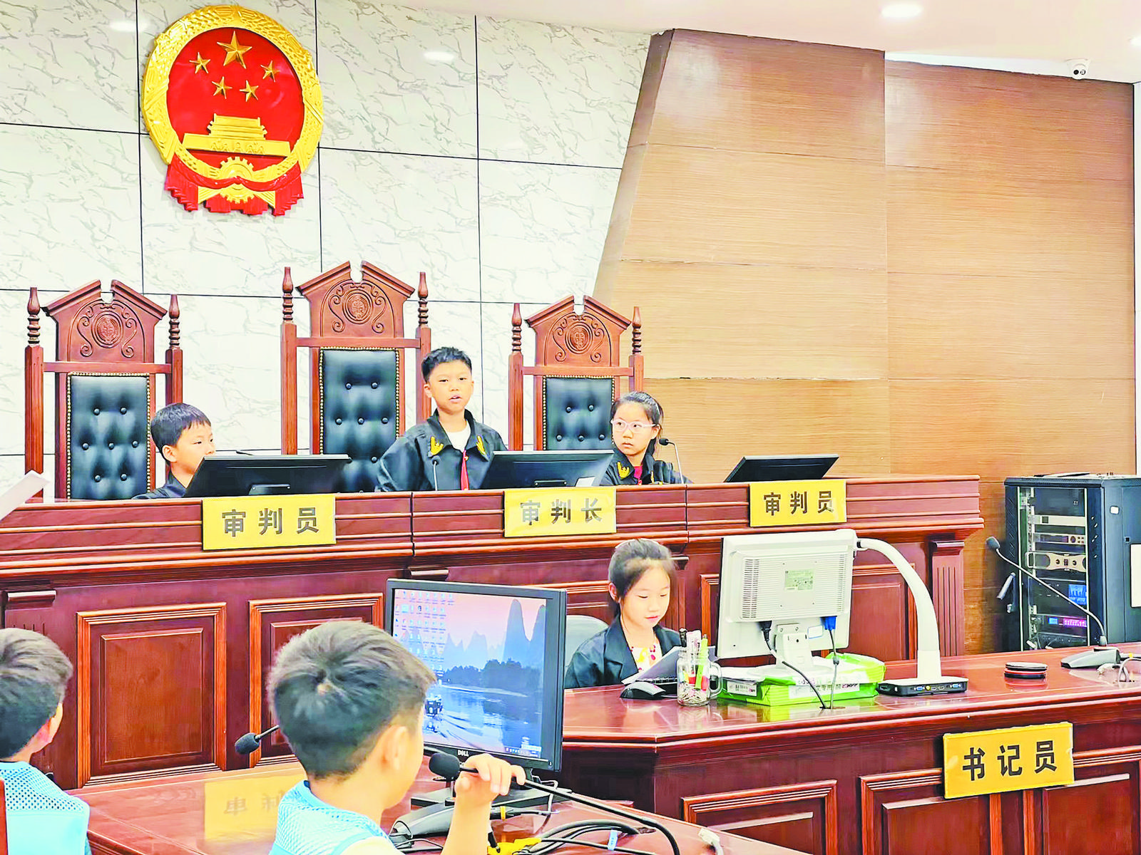 近日,市人民法院廿三里人民法庭聯(lián)合江東街道新時代文明實踐所,開展“法庭開放日”活動。 活動中,20多名小學生在廿三里法庭法官助理帶領(lǐng)講解下,興致盎然地參觀了法庭的安檢室、收案大廳、審判庭等區(qū)域,認真聆聽法庭辦理案件的工作流程。隨后,同學們來到一號審判庭,廿三里法庭副庭長認真地為同學們介紹開庭流程,同學們做好筆記,為接下來的模擬法庭做足準備。 隨著“審判長”一聲法槌敲響,一場別開生面、真實嚴肅的模擬庭審拉開序幕。參演同學全情投入自己的角色之中,臺下旁聽的學生全神貫注,近距離感受法庭的威嚴。此次活動讓同學們很好地接受了法治教育,并對保障未成年人合法權(quán)益,預防未成年人違法犯罪,起到良好的促進作用。 |