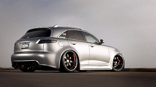 關(guān)鍵是,這部經(jīng)過The Dyno Shop改裝的英菲尼迪FX實在太給力了。銀色的外觀本應(yīng)該顯得十分低調(diào),但輔以黑色尾燈和極低的車身后,就完全變成了一種高調(diào)。