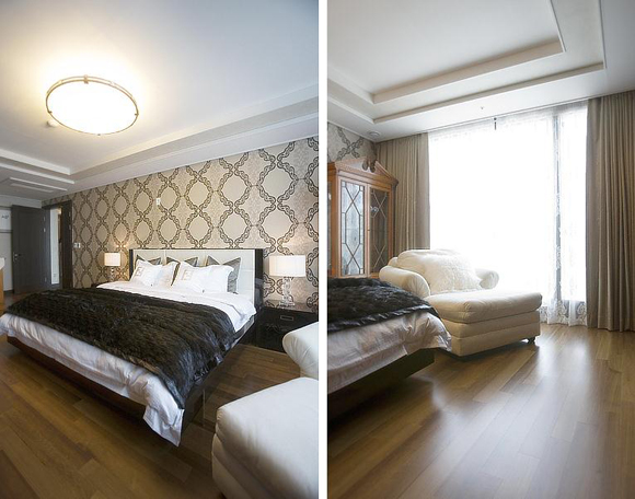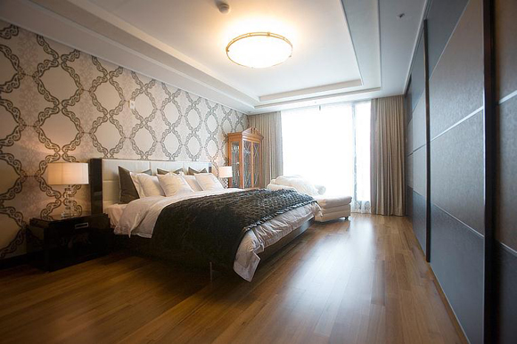 編輯點(diǎn)評(píng):長(zhǎng)方形的屋型用地毯鋪設(shè)可能會(huì)略顯累贅,就用單一的實(shí)木地板,配上深咖啡色和白色的床上四件套,更顯得清新自然。 |