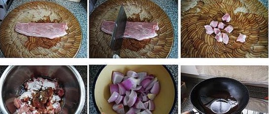 原料: 牛后腿肉一斤、洋蔥一個(gè)、干辣椒一個(gè)、生抽、干淀粉、料酒、蒜瓣、熟黑芝麻適量。 做法: 1、將牛肉洗凈,用刀背輕拍,使肉質(zhì)變松,然后逆著紋理切成粒。 2、將牛肉粒用料酒、生抽、干淀粉、少許色拉油拌勻,腌20分鐘,洋蔥去皮洗凈,切成和牛肉粒大小差不多的塊狀。 3、炒鍋放油,置于火上,開中火,油五六成熱時(shí),倒入牛肉粒翻炒變色,加入料酒烹一下去腥,放入干辣椒段、蒜瓣、洋蔥塊,炒出香味之后,加適量溫水,蓋上鍋蓋燜燒至湯汁收汁,然后轉(zhuǎn)大火,倒入生抽,快炒均勻,再放入熟的黑芝麻,翻炒均勻即可。