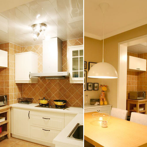 白色的整體櫥柜使人眼前一亮,主人還使用和房間主色調(diào)黃色一樣的廚具,協(xié)調(diào)的色彩彰顯了主人美好的審美觀。 |
