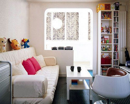 白色的大面積使用,在視覺效果上擴(kuò)大了空間的面積。線條簡單的白色家具,使整個客廳顯得整潔、利落。