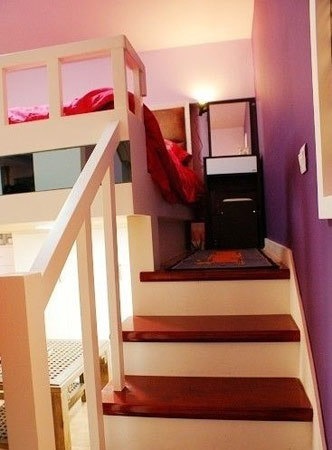 家實在太小了,一切空間都有有效利用——吧臺底下藏了個洗衣機,很巧妙吧