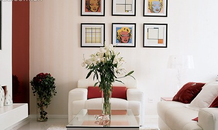 “輕裝修,重裝飾”的理論更適用于小戶型,簡潔的裝修使得空間處理顯得干脆利落,經(jīng)過精心挑選的裝飾物又能夠彌補(bǔ)空間結(jié)構(gòu)上的單調(diào),并彰顯出主人的審美情趣。白色是最具有擴(kuò)張感的色調(diào),它能夠讓不大的客廳顯得明亮而寬敞,而點(diǎn)睛的紅色不僅打破了單一用色可能帶來的視覺乏味,而且還很好地塑造了空間的個(gè)性——活潑而熱情。