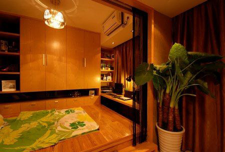 臥室里的榻榻米,下面全部是儲藏空間哦。從客廳拉開門簾則進(jìn)入到臥室。