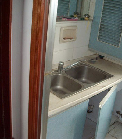 進門原本就是個廚房,也沒有什么隔斷,看上去又臟又舊的。