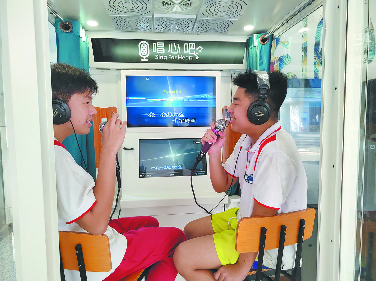 “我的未來不是夢,我的心跟著希望在動……”10月9日下午課間休息時,稠州中學(xué)909班的楊振昊和鄭灝結(jié)伴走向1號教學(xué)樓一樓,相約來到“唱心吧”。伴隨著熟悉的旋律,兩人放聲歌唱,原本因?qū)W業(yè)緊繃的狀態(tài),在歌聲中漸漸舒展。 這樣的場景,如今成了該校課間一道獨特的風(fēng)景線。而這背后,是學(xué)校為呵護(hù)學(xué)生心理健康所做的暖心嘗試。 面對學(xué)生的學(xué)習(xí)壓力,稠州中學(xué)在本學(xué)期有了新動作:在1號教學(xué)樓和3號教學(xué)樓走廊盡頭,共設(shè)置了兩間“唱心吧”。不少學(xué)生將其稱作“迷你減壓KTV”,這三四平方米的玻璃房雖小巧,卻處處透著暖心設(shè)計:內(nèi)部擺放著兩把高腳椅,電腦點歌系統(tǒng)、麥克風(fēng)、液晶顯示屏與音響設(shè)備一應(yīng)俱全,更重要的是,良好的隔音效果讓歌聲只停留在小空間里,完全不會干擾到其他同學(xué)學(xué)習(xí)或休息。 “到了初三,作業(yè)量和考試頻率都增加了,有時候我會覺得壓力不知道怎么釋放!眲偝旮璧臈钫耜桓嬖V記者,以前他總靠運動釋放壓力,現(xiàn)在“唱心吧”成了新選擇,“選首自己喜歡的歌,跟著唱完,感覺也輕松了不少!焙蜅钫耜灰粯樱簧賹W(xué)生會利用課間或午休時間來這里“打卡”,無需預(yù)約,隨心點歌,在音樂與歌唱中暫時拋開考試、分?jǐn)?shù)的煩惱,讓情緒得到自然釋放。 值得關(guān)注的是,“唱心吧”里的曲庫并非隨意設(shè)置,而是學(xué)校結(jié)合學(xué)生喜好篩選出的正能量歌曲。這些歌曲里,既有歌頌青春夢想的旋律,也有傳遞親情友情的歌詞,學(xué)生在歌唱時,不僅能釋放壓力,更能在旋律與文字中感受積極向上的力量,無形中堅定對生活與學(xué)習(xí)的熱情。 “唱歌本身就是一種有效的減壓方式!背碇葜袑W(xué)心理健康老師陳晨瑤解釋道,唱歌是一種深度的腹式呼吸訓(xùn)練,能幫助學(xué)生調(diào)節(jié)生理狀態(tài)。更關(guān)鍵的是,人體在歌唱過程中會分泌內(nèi)啡肽與催產(chǎn)素,這兩種物質(zhì)能讓人產(chǎn)生愉悅感,從生理和心理雙重層面幫助學(xué)生緩解焦慮,達(dá)到“音樂療愈”的效果。 稠州中學(xué)黨委書記陳慶介紹,除了面向全校所有年級開放的“唱心吧”外,日常教學(xué)中,學(xué)校還通過開設(shè)心理課、舉辦心理講座、提供一對一心理咨詢等方式,為學(xué)生搭建心理支持平臺;借助運動會、心理周等豐富的校園活動,讓學(xué)生釋放活力、樹立自信。“我們希望通過多元途徑,幫助學(xué)生正確看待學(xué)習(xí)與考試,理解人生的多元意義,讓他們在青春期不僅能學(xué)好知識,更能擁有健康的心態(tài),快樂成長! |