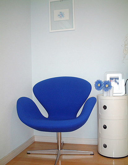 藍(lán)色的靠背椅曲線簡(jiǎn)潔優(yōu)美,我喜歡這種樣式。