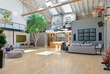 底樓諾大的空間里僅設(shè)置了兩個簡單的功能區(qū),而中間空曠的部分保留打造成為室內(nèi)籃球場地。通過家具間若有若無的分割手段,從而使整個家的格局蘊涵個性化的審美情趣。靠墻安裝的籃球架,以及墻面上用來放置籃球的擱架等,這些裝備預示著一股年輕的生命氣息正在涌動。 |