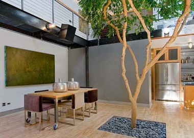 考慮到LOFT的結(jié)構(gòu)因素,影音區(qū)的電視背景墻上安裝了九塊平板電視,來拼裝出一整塊大型的螢?zāi)。素水泥涂抹的墻面,令一股懷舊的氣息撲面而來;而其他家具整體中性色調(diào)的風(fēng)格,也是顯得如此和諧。 |