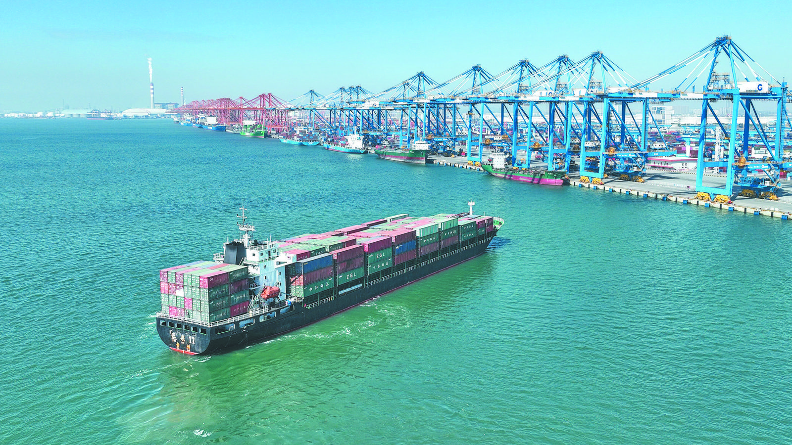 11月29日,一艘海輪駛向欽州港碼頭(無人機照片)。 記者11月30日從國鐵南寧局獲悉,截至11月29日,西部陸海新通道班列累計發(fā)送集裝箱貨物突破500萬標箱、達500.3萬標箱,其中今年以來發(fā)送突破130萬標箱,同比增長55.3%,保持強勁增長勢頭。 近年來,西部陸海新通道班列輻射范圍不斷擴大,實現(xiàn)多船企、多港口、多品類全面發(fā)展,圖定班列線路由2019年的2條增至2025年的26條。今年前三季度,西部地區(qū)經西部陸海新通道進出口6115億元,拉動西部地區(qū)外貿增長3.4個百分點。 |