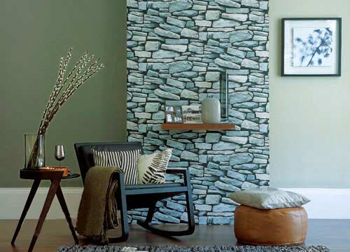 模仿毛皮、木材或者石頭紋樣的壁紙,隱藏方式固定的層板和精心挑選的花瓶,都為墻面增添視覺(jué)焦點(diǎn)。