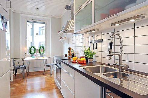 第一套:58平米單身公寓 推薦適合人群:追求簡約素雅的年輕白領 推薦理由:這是一套58平米的單身公寓,入戶后是條長長的過道。過道的盡頭有餐桌和以赫本為主題的裝飾畫。風格簡約而干凈,非常適合年輕的白領。
