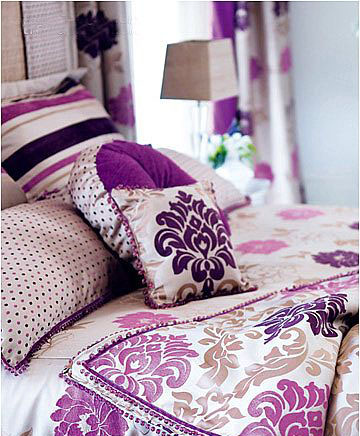 面料裝飾 歐美古典主義風(fēng)格的床品,在材料選擇方面,以純棉、綢緞、錦緞為主;有印花、刺繡、提花等不同的式樣;色彩方面,永恒的白色輔以當(dāng)季的流行色是設(shè)計的重點;在細部花紋上則用鑲繡、鏤花、緞帶造型,營造雅致的感覺,帶來浪漫與溫柔。 |