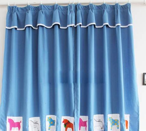 卡通馬花藍(lán)色布藝窗簾 參考價(jià)格:33.00 - 116.00元 產(chǎn)品品牌: 越帛 窗簾款式: 普通打褶 打孔簾 窗幔簾 羅馬簾 羅馬簾 遮光功能: 裝飾+半遮光 產(chǎn)品成分: 棉滌 混紡 產(chǎn)品貨號(hào): KI99 小編點(diǎn)評(píng):藍(lán)白搭配總是給人清新的舒爽,再加上窗簾底端多彩的可愛小馬,非常適合兒童房。 網(wǎng)購參考:http://item.taobao.com/item.htm?id=8814192597 藍(lán)色窗簾推薦二: 藍(lán)色漸變拼色窗簾