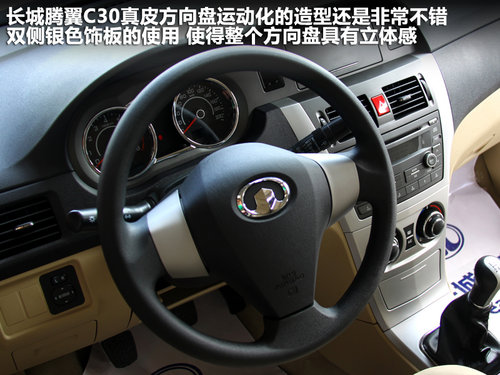 長城騰翼C30這款真皮方向盤運(yùn)動化的造型還是非常不錯的。雙側(cè)銀色飾板的使用,使得整個方向盤具有立體感。而不同的配置,是否會在方向盤上加裝快捷控制按鈕,僅從這一款車上還不能完全確定。