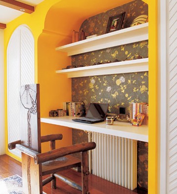書房這個空間對于小戶型緊張的面積來說總有點尷尬,但它對于如今日趨增多的SOHO一族來說似乎又的確重要,可要在日常必備的空間里再設(shè)立出一個獨立的書房非常困難,即使勉強為之,也會在使用過程中出現(xiàn)不舒服的情況。這時不妨可以利用所選家具的特殊性來解決這一問題。 亮點:空間的構(gòu)成往往取決于其中的家具,兩者相輔相成,因而選擇一個可移動的書架作為書房與其他區(qū)域劃分的家具,或選擇帶有腳輪的辦公家具都要經(jīng)過深思熟慮。因為它們?yōu)檫@個空間既要相對固定,但又得留有可變性提供了可能。