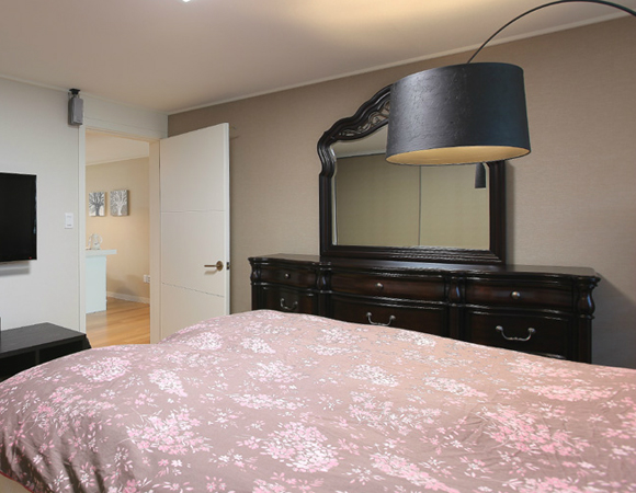編輯點(diǎn)評(píng):藕色床單、純白色的墻壁和復(fù)古梳妝柜的搭配,反映主人的知性都市個(gè)性。藕色的中庸個(gè)性添加房?jī)?nèi)的溫馨感,更能讓人放松神經(jīng),養(yǎng)足精神。