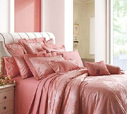 蝶粉伊人 工藝:舒適的絲棉染色提花面料,配以大氣復(fù)古的歐式卷草花紋、妖嬈溫馨的桃紅色,營造出浪漫古典的感覺,精致舒展的花邊和繡花更是錦上添花。 居家環(huán)境:配以典雅,色彩明快的家居風(fēng)格,不但高貴華麗又精致時(shí)尚。