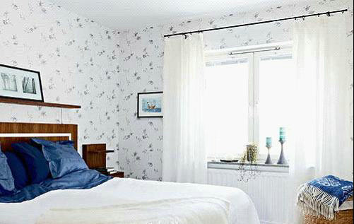 與碎花墻面色相近的藍(lán)色靠包,將臥室襯托得更加平和。搭配上手感厚實(shí)富有光澤的白色床品,以及材質(zhì)輕柔的白色窗紗搖曳,透過(guò)柔和的光線,讓身體完全回歸到原始自然的狀態(tài)。