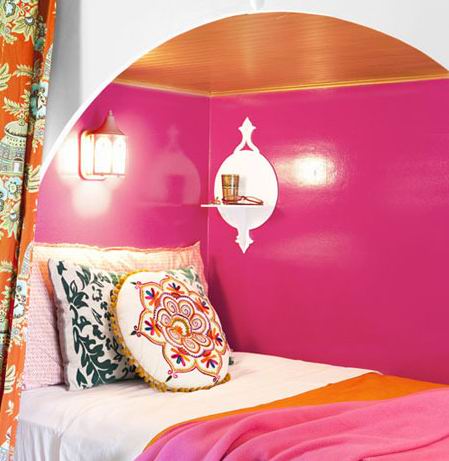 搭配繽紛臥室之粉色 粉色是女孩打造秘密閨房的法寶,粉色的深淺搭配會令空間極富層次感,在高光澤的粉色中加入傳統(tǒng)的中國元素繡花抱枕,讓這個小臥室別有一番風(fēng)情,中國味十足的傳統(tǒng)拱門搭配,讓中式元素發(fā)揮到極致。床邊墻面安裝的小架子也是個貼心的設(shè)計,一些如眼鏡、茶杯等小物件得以安放,絲毫不占用床上的空間,讓臥室主人安然入睡。 |