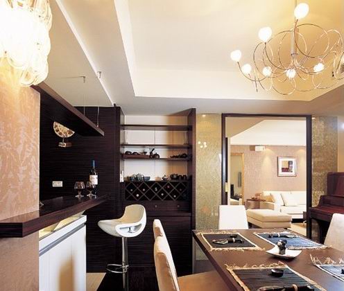 空間氛圍中,桌椅和木柜都以大地色系為選擇,加上明亮搶眼的燈光,溫暖氛圍隨即被帶上。