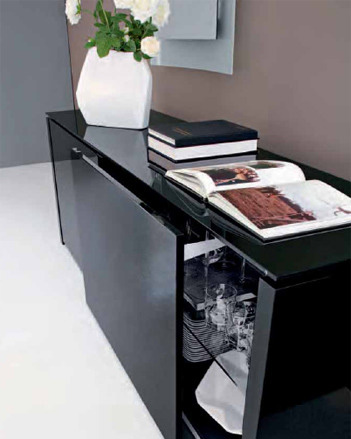 平移門的設(shè)計,使開啟度更大,在關(guān)閉時,嚴絲合縫的設(shè)計使表面相當平整,利落干凈。在幫助收納碗筷。餐具的同時,這款儲藏柜還提供了物品的陳列區(qū),在其表面可以隨意放置心儀的小物品。 抽屜細分