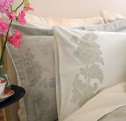 枕頭邊緣的同款花紋,仿佛剪影般貼合在枕頭上
