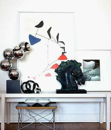 利用過道的一側(cè)墻面,采用后現(xiàn)代風(fēng)格的飾品作為裝飾元素,打造出別具設(shè)計感的立面,成為整個空間的視覺亮點。個性而時尚,靈活的組合更有著節(jié)奏美感。